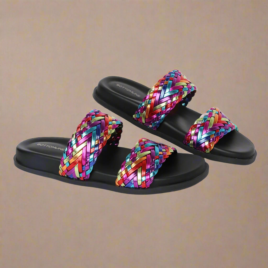 Available in two versatile options — Multi with black sole and Gold-Silver with tan sole. Maya’s woven straps add a modern, artisanal touch while keeping your look playful or sophisticated depending on the color you choose. The cushioned sole ensures day-long comfort, making Maya perfect for casual days, festive outings, or travel-friendly style.