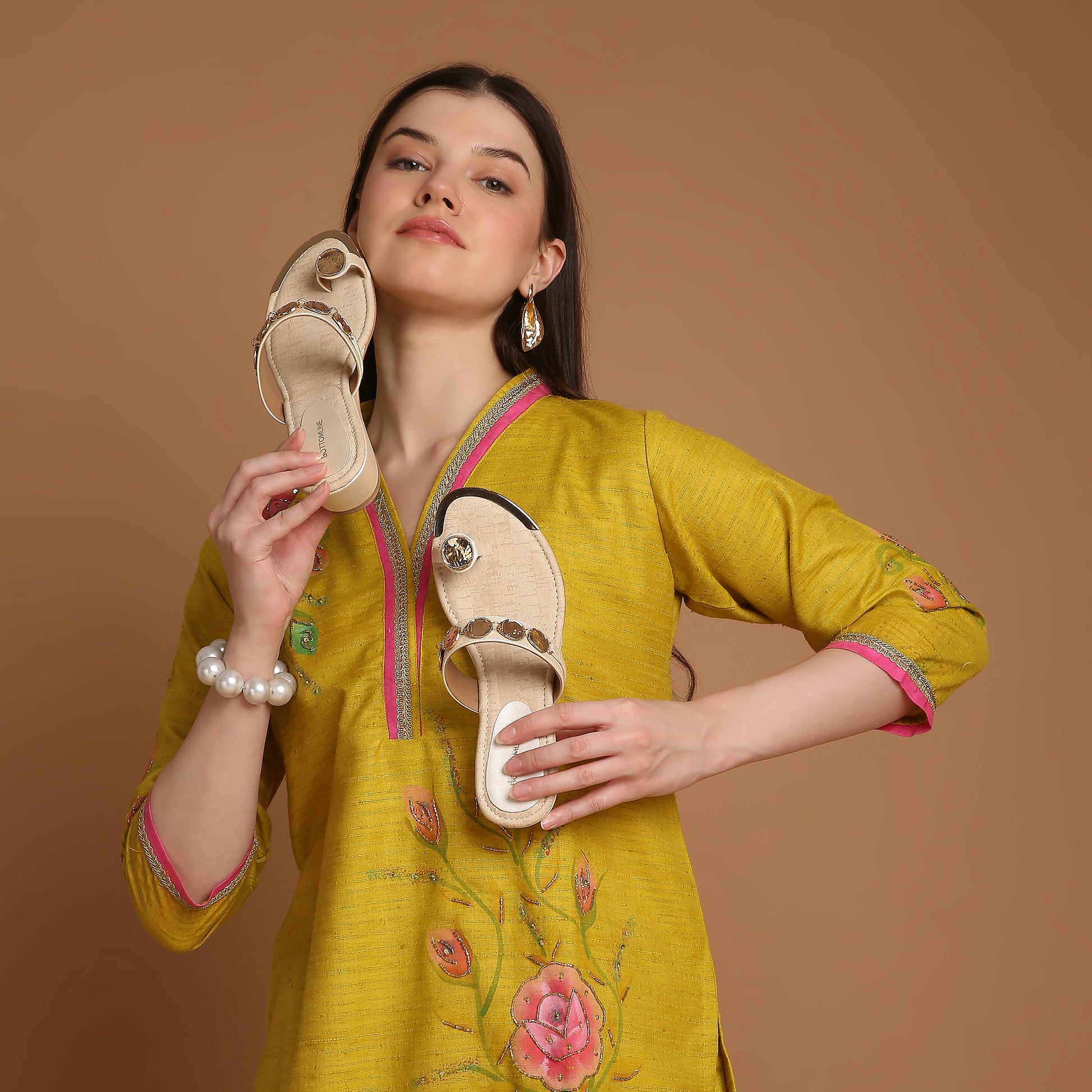With a 2-inch wedge heel for subtle lift, cushioned insoles for comfort, and statement embellishments across the straps, Nayra is versatile enough for festive gatherings, family functions, or simply elevating your daily ethnic wear.
