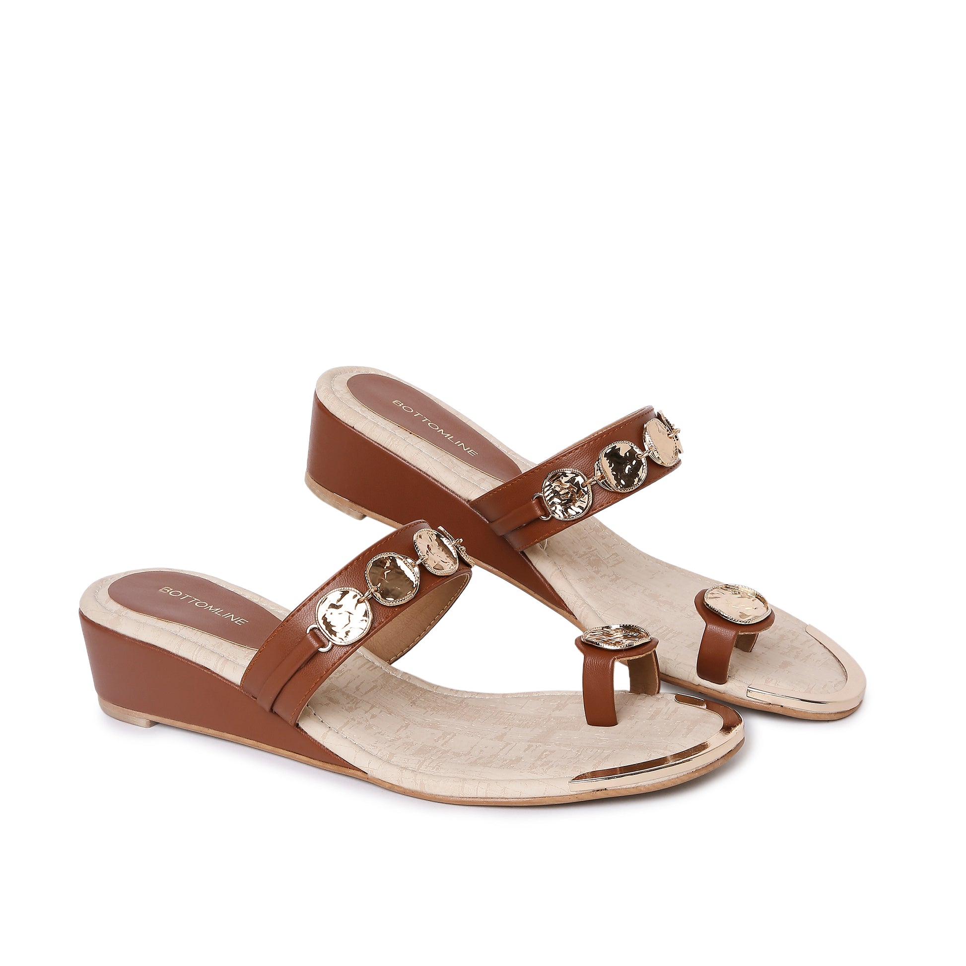 Add a touch of timeless charm to your wardrobe with Nayra, our handcrafted vegan leather wedges adorned with golden coin-style embellishments. Available in Light Gold and Tan, these wedges bring together comfort, tradition, and elegance in a design that transitions seamlessly from day to night.
